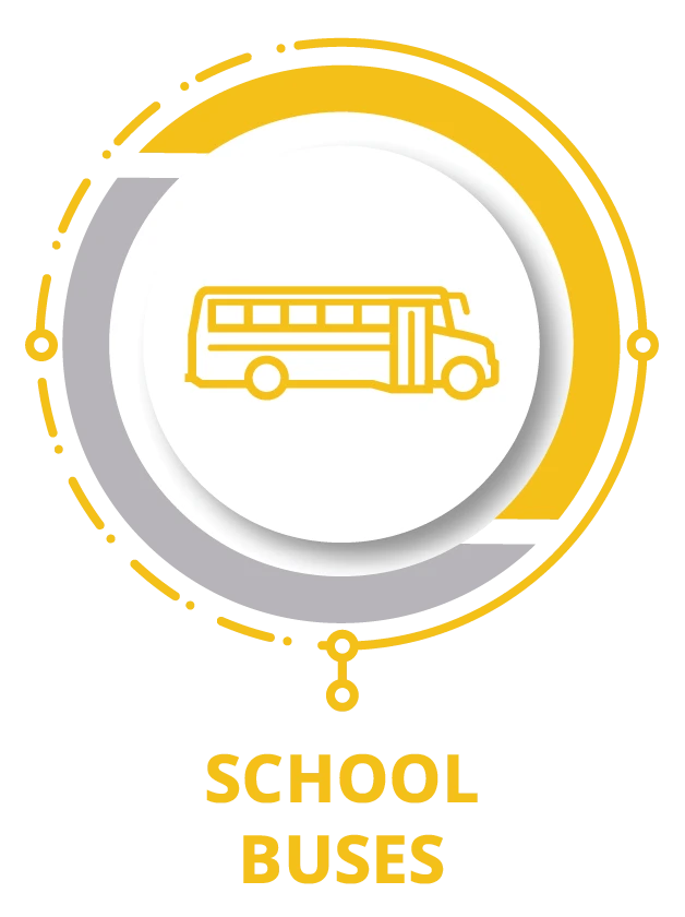 School Buses running on clean energy. Includes Propane School Buses.